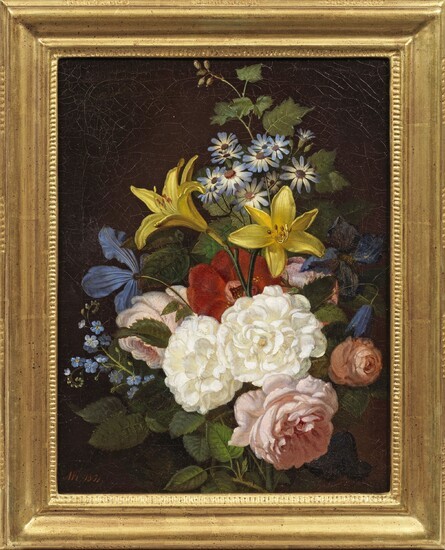 Ein Beispiel ihrer künstlerischen Entwicklung zeigt das Aquarell Rosen und Schwertlilie, das die Künstlerin 1839 angefertigt hat.