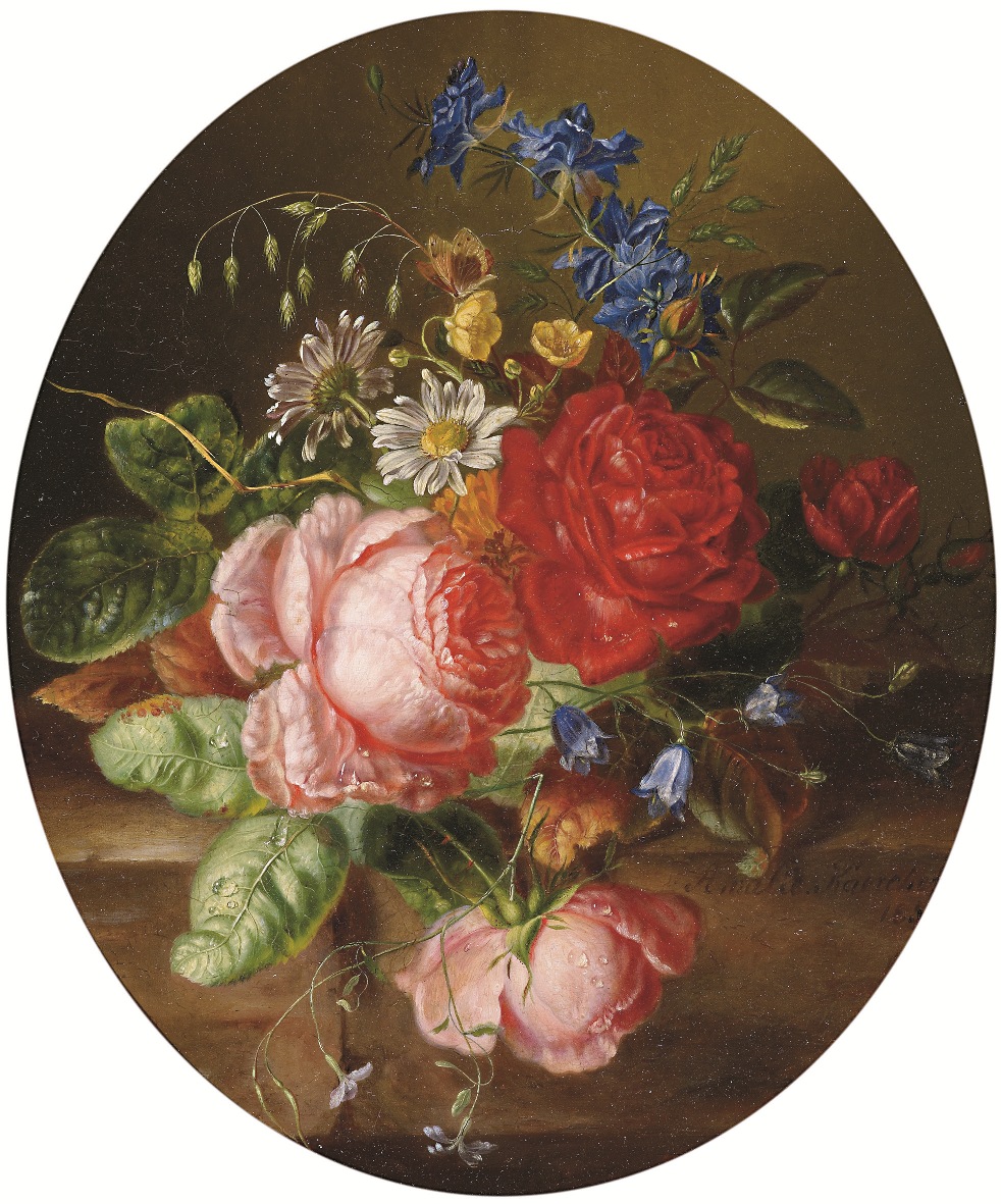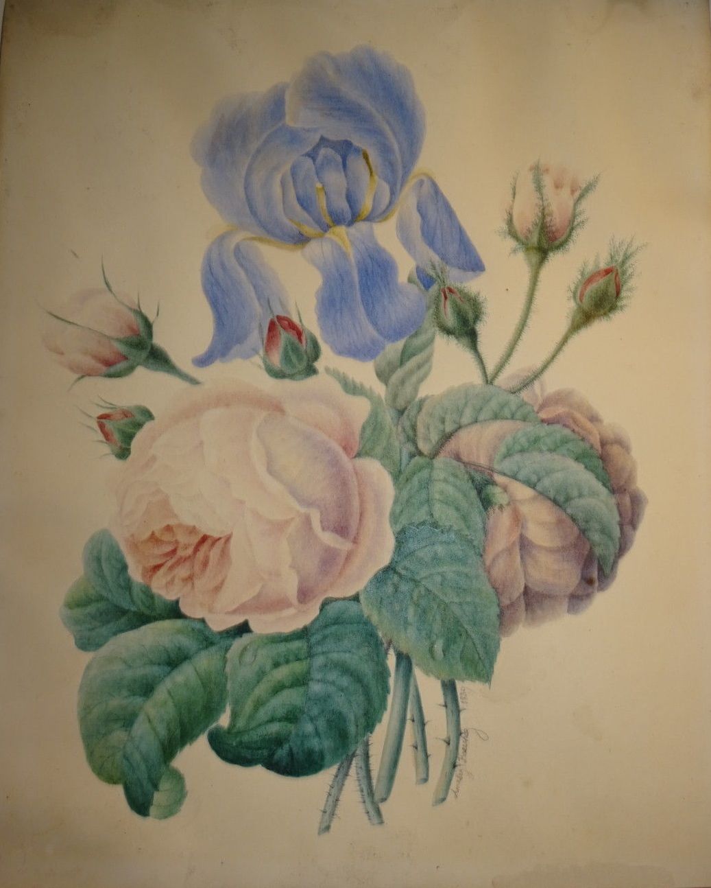 Ein Beispiel ihrer künstlerischen Entwicklung zeigt das Aquarell Rosen und Schwertlilie, das die Künstlerin 1839 angefertigt hat.