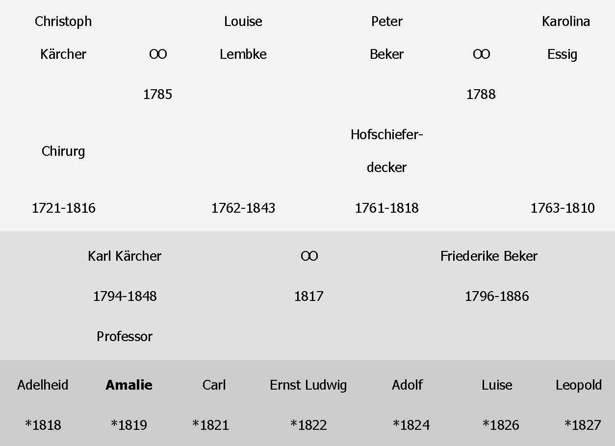 Auszugsweiser Stammbaum der Malerin Amalie Kärcher