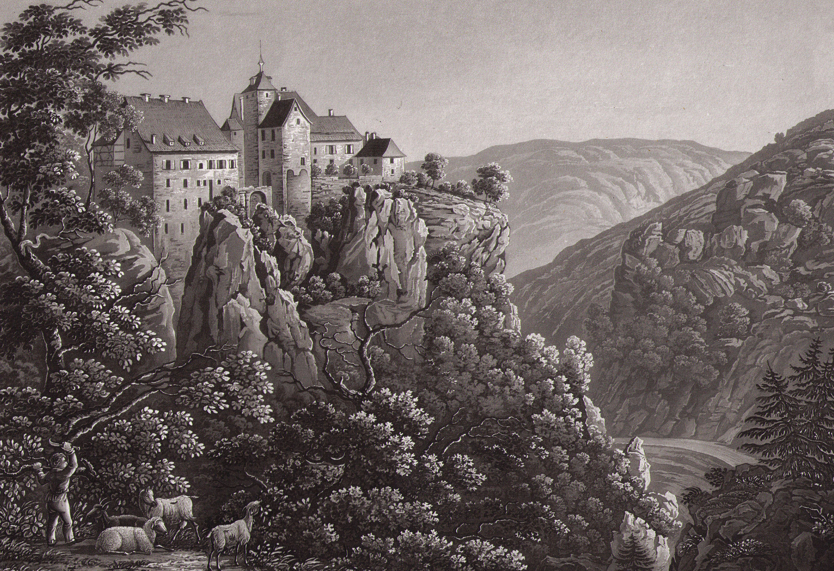 Abb. 4 Schloss Werenwag im Jahre 1835 nach einer Lithographie von J. Sperli, erschienen im Verlag H. Locher in Zürich