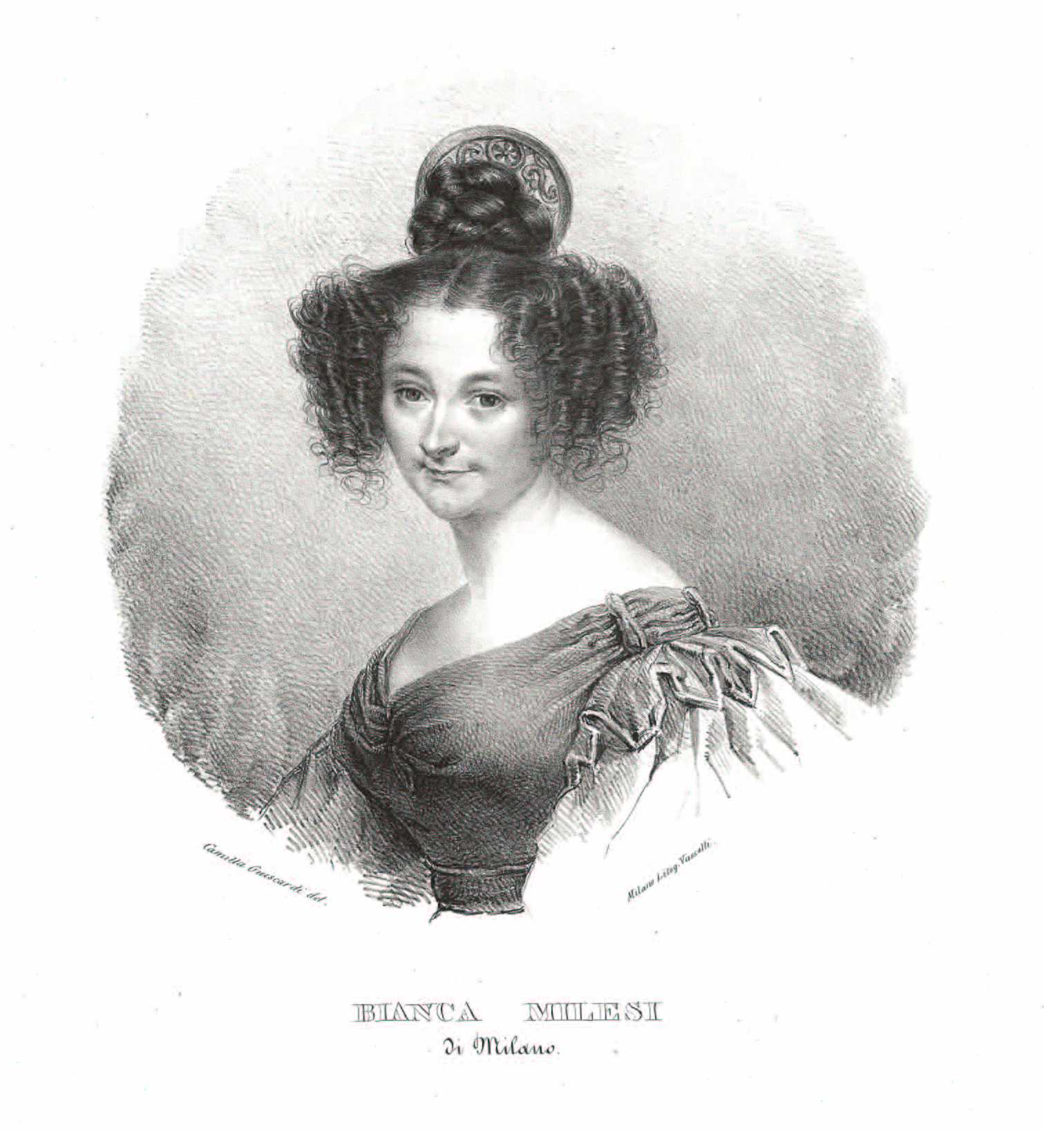 Mit Datum vom 20. September 1813 schreibt Sophie Reinhard an Albrecht Adam: „Ich wohne seit Jahr und Tag im Hause einer jungen schönen Mailänderin nahmens Milesi dies Mädchen wiedmet sich mit seltenem Eifer der Kunst, ist reich geachtet gut, und meine Freundin, ich gehe zu ihr in die Kost, im Sommer machen wir kleine Reisen zusammen, kurz ich habe würklich hierin viel Glück sie gefunden zu haben, und nie hätte ich gedacht daß in Italien eine Freundin für mich zu finden wäre, ich fand sie.“[97] Bianca Milesi war zusammen mit ihrer Mutter im Oktober 1810 über Pistoria und Florenz nach Rom gereist und hatte sich dort ein Atelier eingerichtet. Unter den Künstlern, die sie in Rom kennen lernte, ist vor allen der Bildhauer Antonio Canova zu nennen, der sie nach Kräften förderte und mit dem sie bald eine innige und dauerhafte Freundschaft verband.[98]