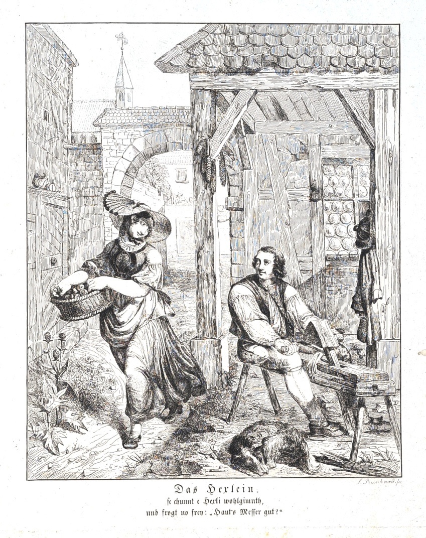Hebel ist mit meiner Arbeit zufrieden, findet seine Oberländer, und sagt ich hätte ihn verstanden. Neun Jahre meiner Jugend die ich unter diesem einfachen Volk verlebte machtens mir möglich eine Arbeit zu unternehmen, die sehr viel reizendes für mich hatte, weil sie mich beständig an frohe Tage erinnerte;2 die radier Nadel welche ich bey dieser Gelegenheit zum erstelmahl in die Hand nahm erschwerte mir jedoch Vieles, und um den Ausdruk meiner Köpfe nicht zu verliehren, verzichtete ich auf weitere Ausführung.