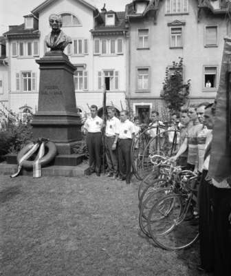 „Bis spät in die Nacht hinein dauerte die Feier; erst nach zwei Uhr kamen die Gäste wieder in Orvieto an. Nun rüsteten sie sich zum Abschied, der am 29. August stattfand und ihnen nicht gerade leicht geworden zu sein scheint. Am Fusse des Montefiascone nahm man mit dem Marchese Gualtieri in einer kleinen Osteria noch ein gemeinsames Mahl ein, bei dem der herrliche Muscatwein, der sogenannte Est-Est-Est nicht fehlen durfte, und dann giengs frohen Muthes der Siebenhügelstadt zu.“[110]