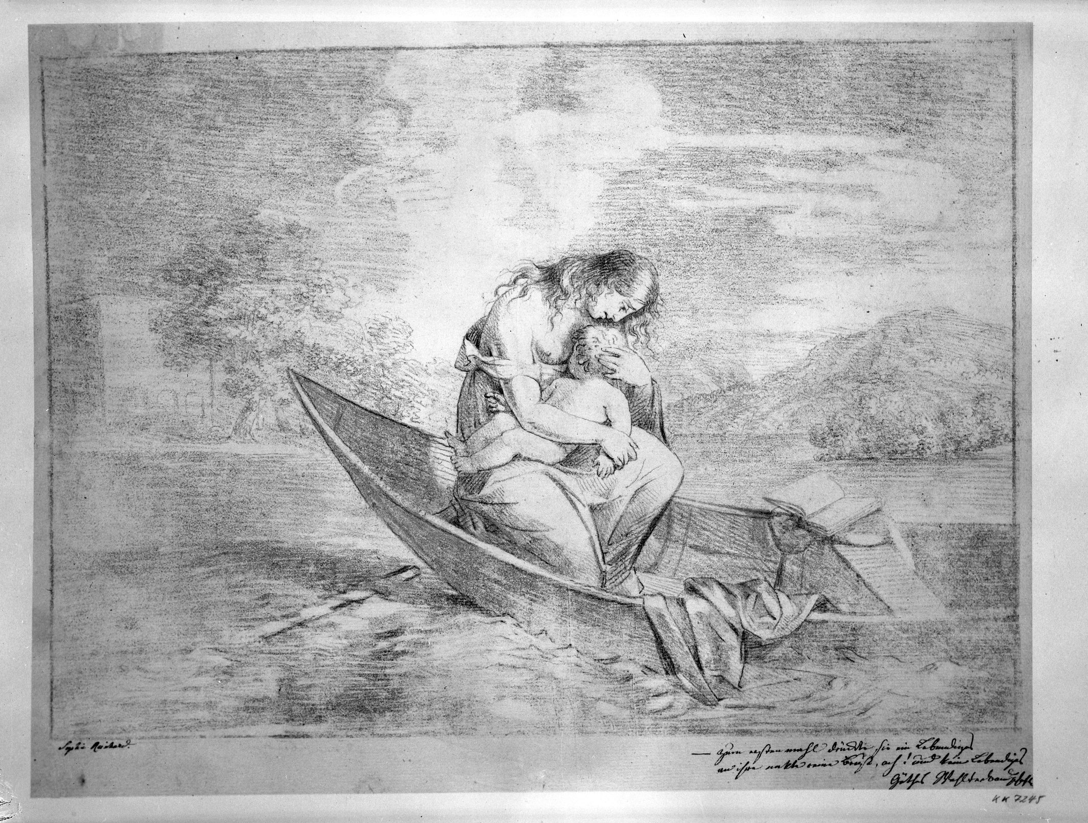 Ottilie mit totem Kind im Kahn. Szene aus Goethes Wahlverwandtschaften.